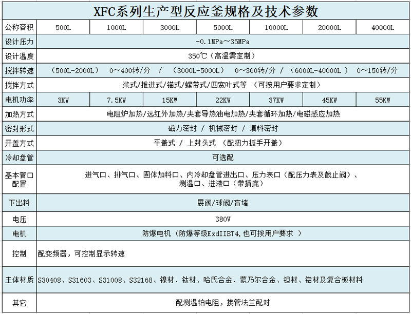 根据工艺要求:生产容积100L---50000L